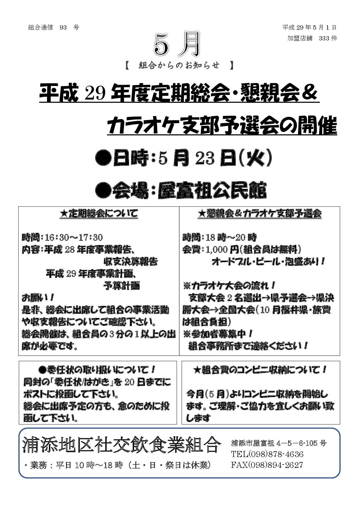 - 平成28年度定期総会&懇親会・カラオケ浦添支部予選会